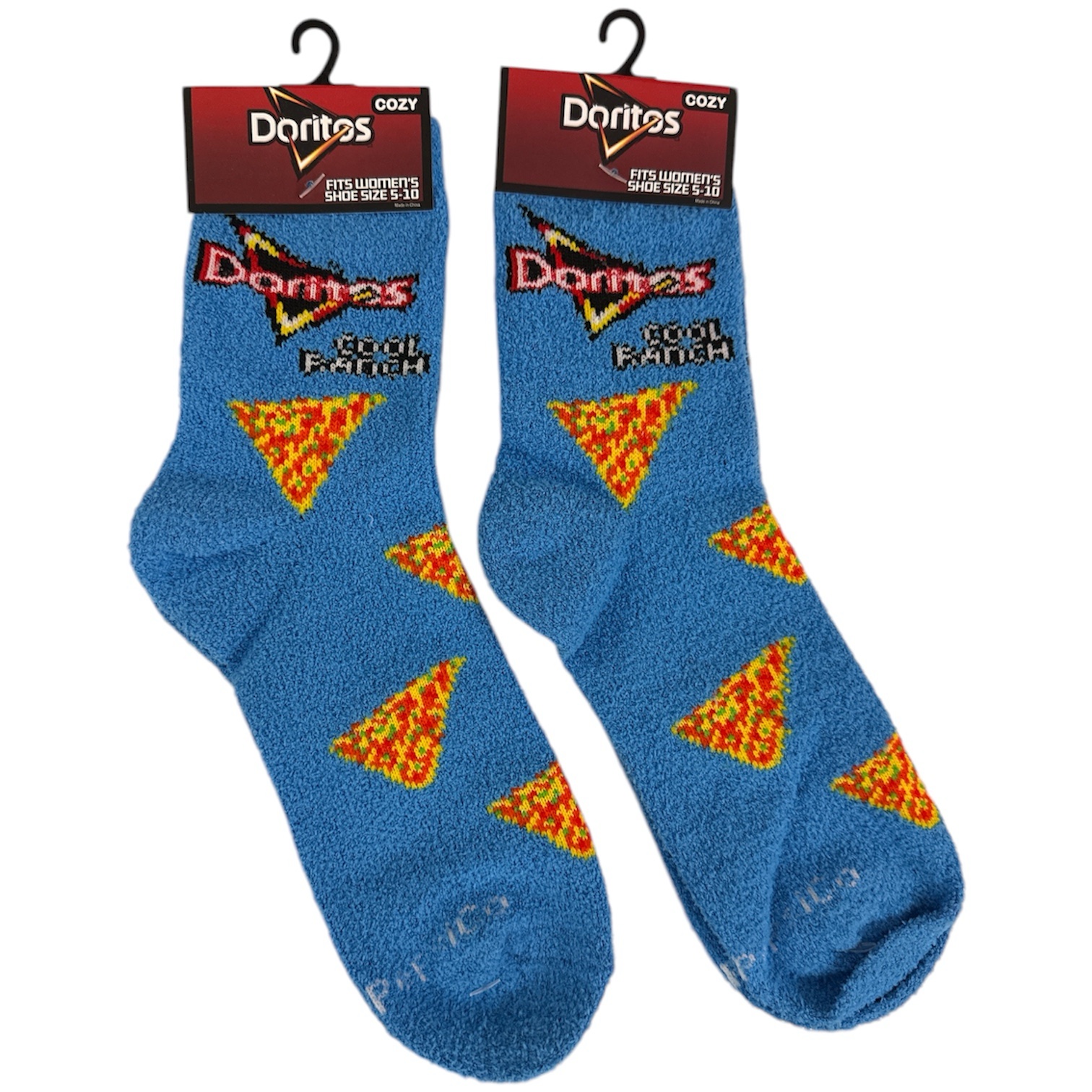 You are buying Cozy Doritos socks. You’ll receive 2 pairs of socks! Fits shoe sizes 5-10. 97% polyester, 3% spandex.